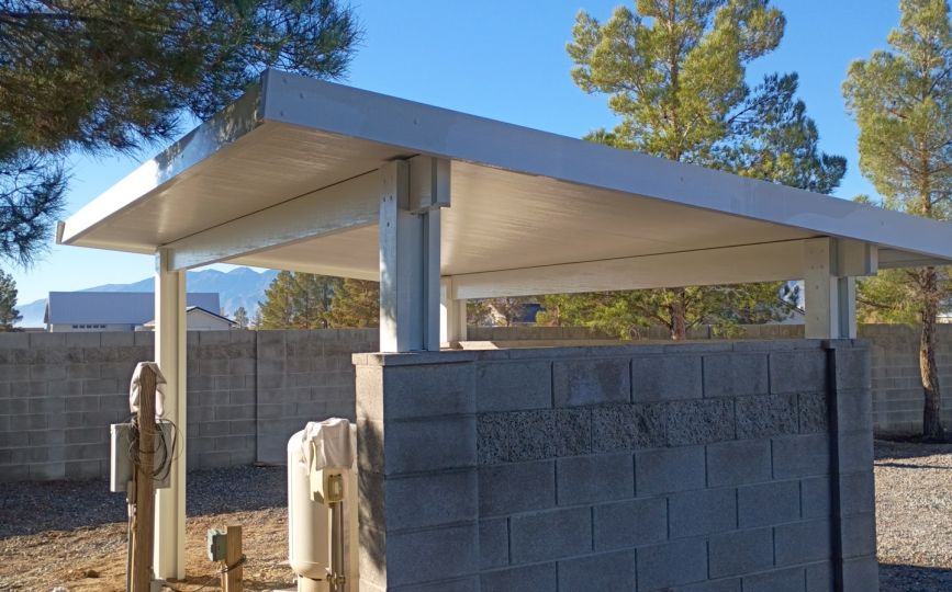 Living in Pahrump also means living with earthquakes and finicky soil. Heavy wood-and-tile patio covers pack a lot of mass, and in a quake, mass multiplies the forces trying to wrench anchors out of the wall and push posts off their footings. The lightness of Alumawood—with foam-core panels and thin aluminum skins—means much lower inertial forces when the ground shakes, so connections are under less stress and the risk of catastrophic collapse drops. Even in the unlikely event of a failure, lighter components mean less risk of serious injury than falling beams, plywood, and concrete tiles. On the ground, that low weight also puts less pressure on the patio slab, which is a big deal in expansive soils that swell and shrink. The lighter load helps keep slabs from cracking or sinking unevenly under the posts over time.
