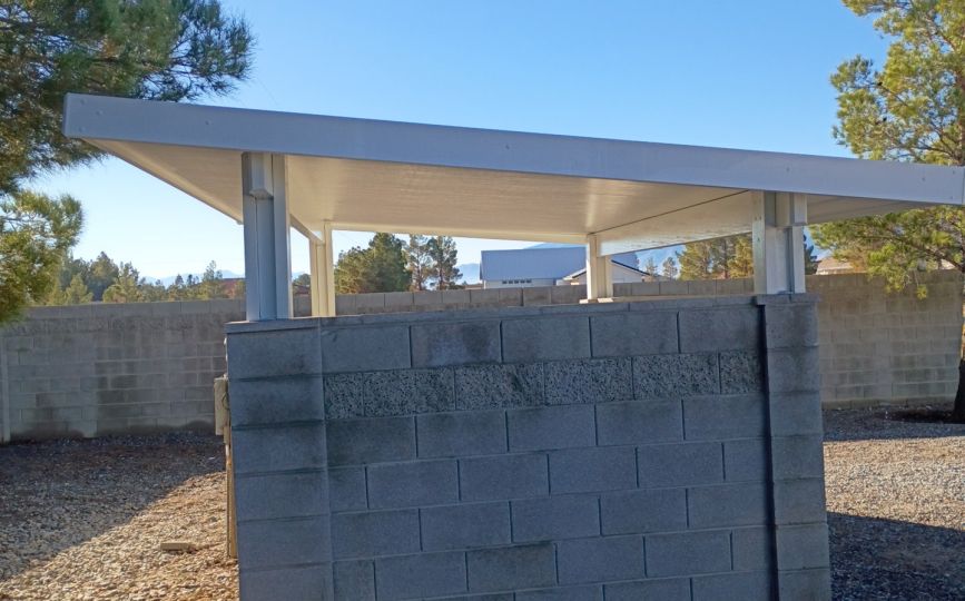 Snowden Designs’ 16′ x 12′ white insulated Alumawood patio cover in Pahrump is built to handle the Mojave heat while keeping your patio way cooler and more comfortable. The reflective “cool roof” finish and 3″ insulated panels block most of the sun’s heat, cut down the warmth that transfers into the house, and can even help reduce AC use. With its 12′ height, steel-reinforced beams, solid wall anchoring, and interlocking Maxx Panels, it’s a strong, low-maintenance setup that stands up to wind, movement in the soil, and all the issues wood patios usually face—like termites and rot. It’s also quieter in the rain, reduces condensation, and feels more like an outdoor room than a metal awning. Plus, it’s energy-efficient, long-lasting, backed by a transferable warranty, and even boosts your home’s value over time.