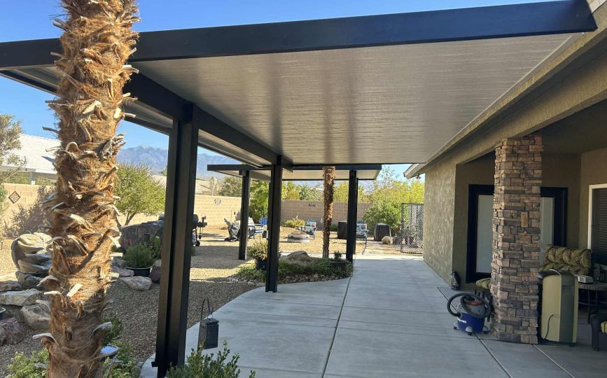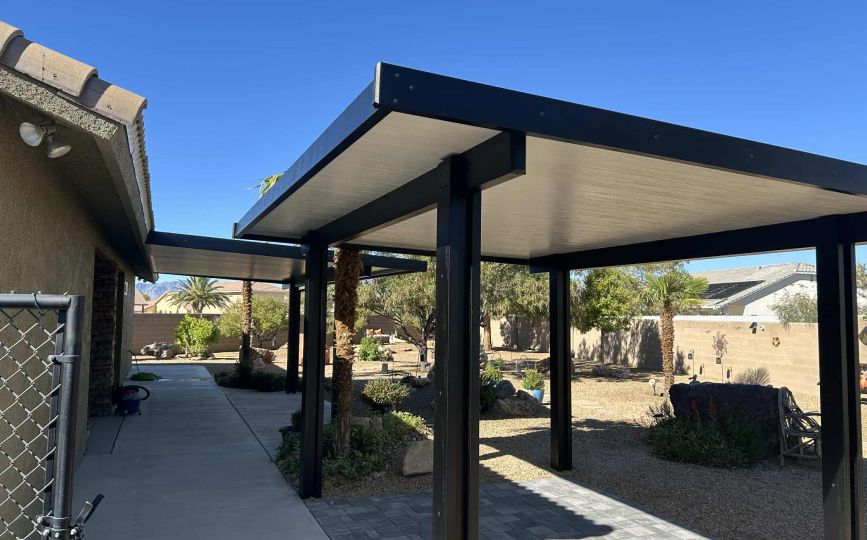 We’re excited to showcase our latest project for one of our valued Pahrump clients: a stunning dual patio cover installation featuring two distinct alumawood insulated roof structures that perfectly demonstrate how intelligent design creates outdoor spaces protected from both pests and Nevada’s demanding desert elements.